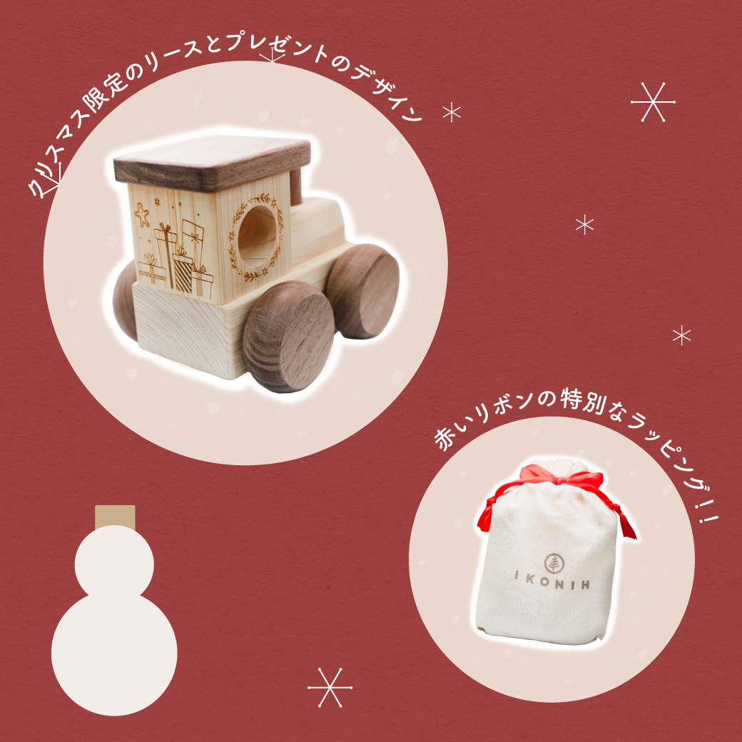 IKONIHの大人気アイテム「オルゴールトレイン」が、期間限定のクリスマスバージョンになって新登場🚂クリスマスリースやクリスマスプレゼントのイラストをまとった特別デザイン!